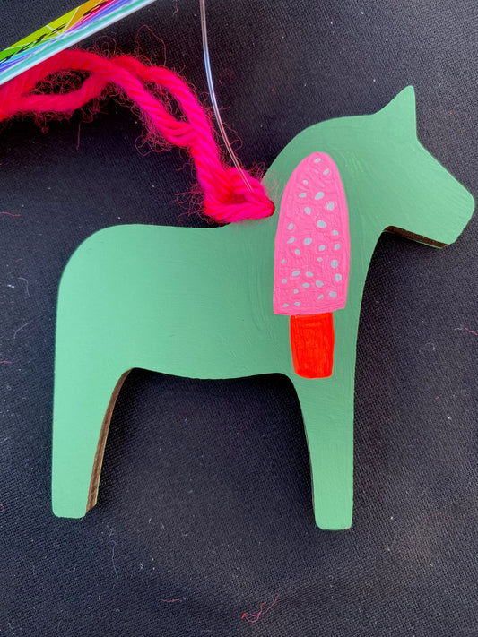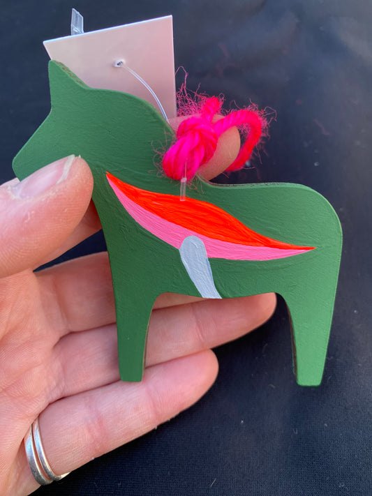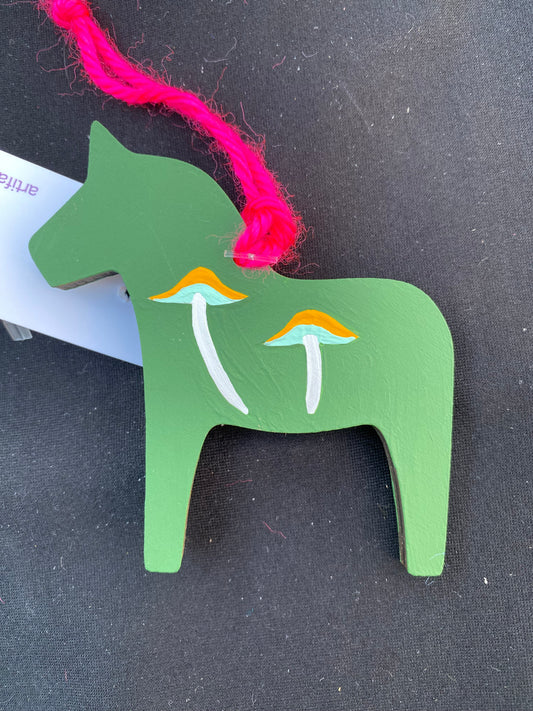Ornament Dala Horse Pink Morel Mushrooms Modern Swedish Norwegian