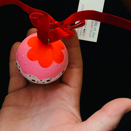 Ornament Painted Wood Ball Abstract Red Orange Dots