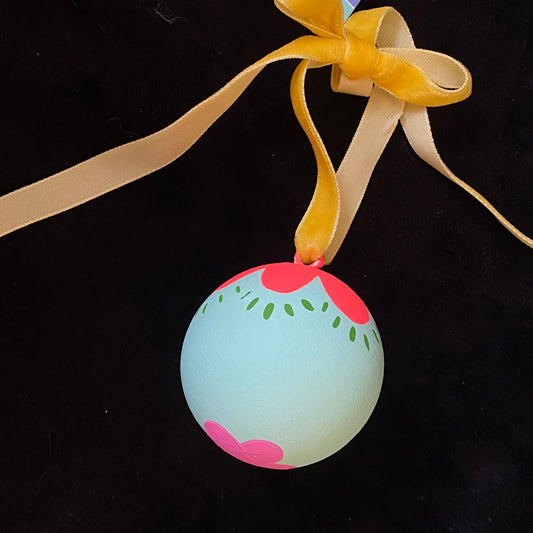 Ornament Painted Wooden Ball Bright Blues Green Pink