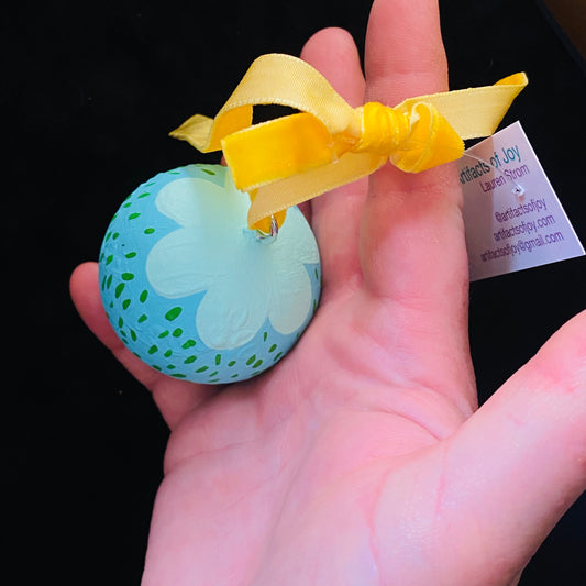Ornament Painted Wood Ball Abstract Blue Green Pink Dots