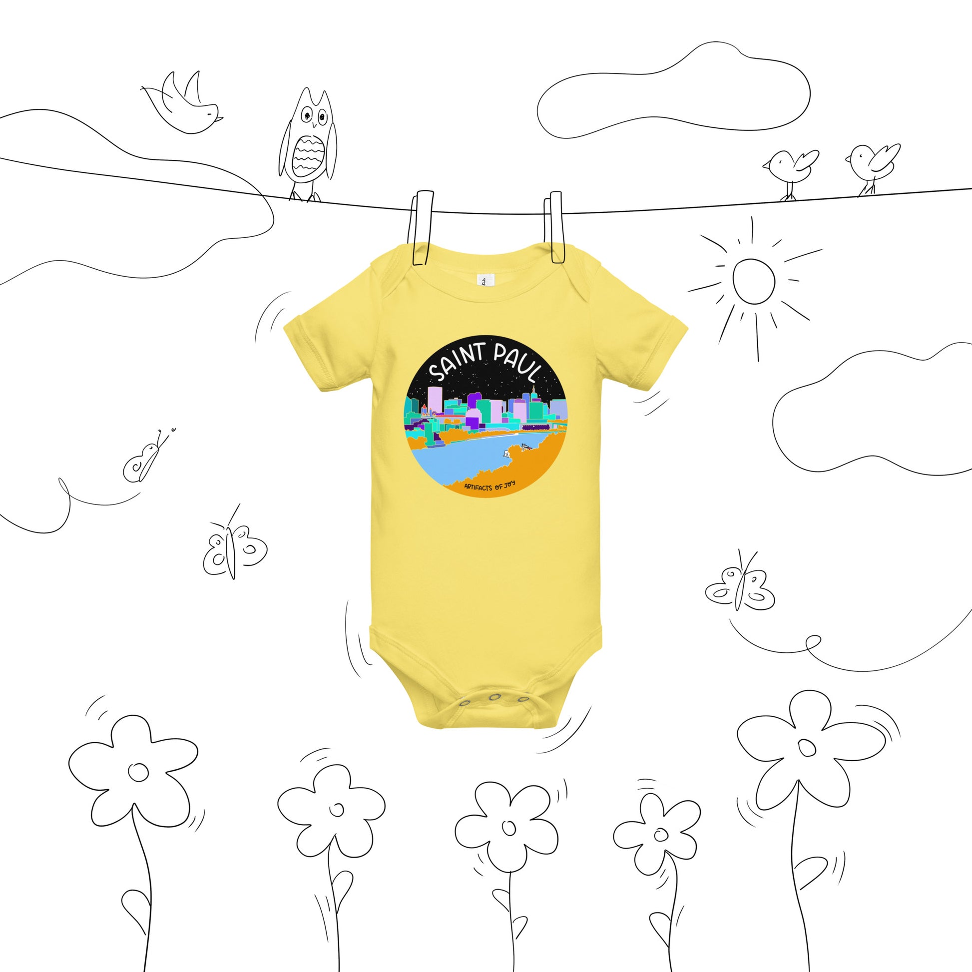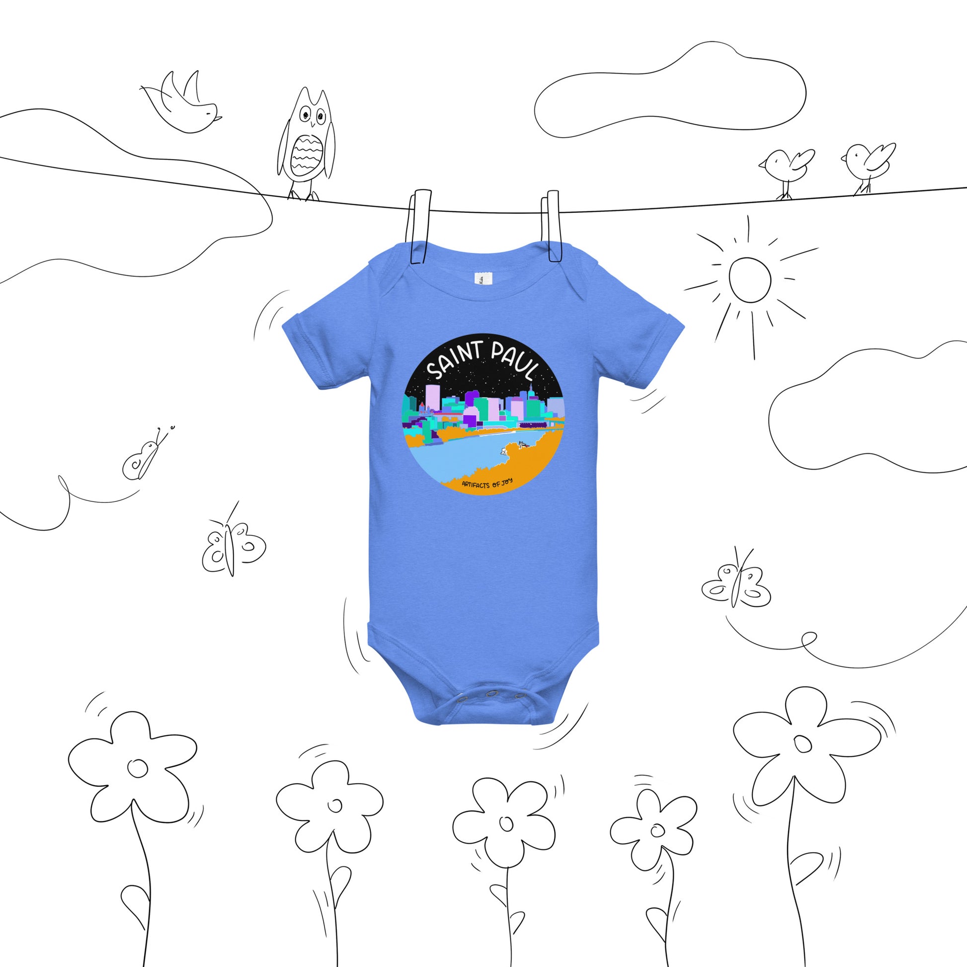 Dress your baby to the nines with this 100% cotton one piece. It has three snap leg closure for easy changing, a comfortable envelope neckline, and a beautiful print that's bound to get the baby all happy and giggling.