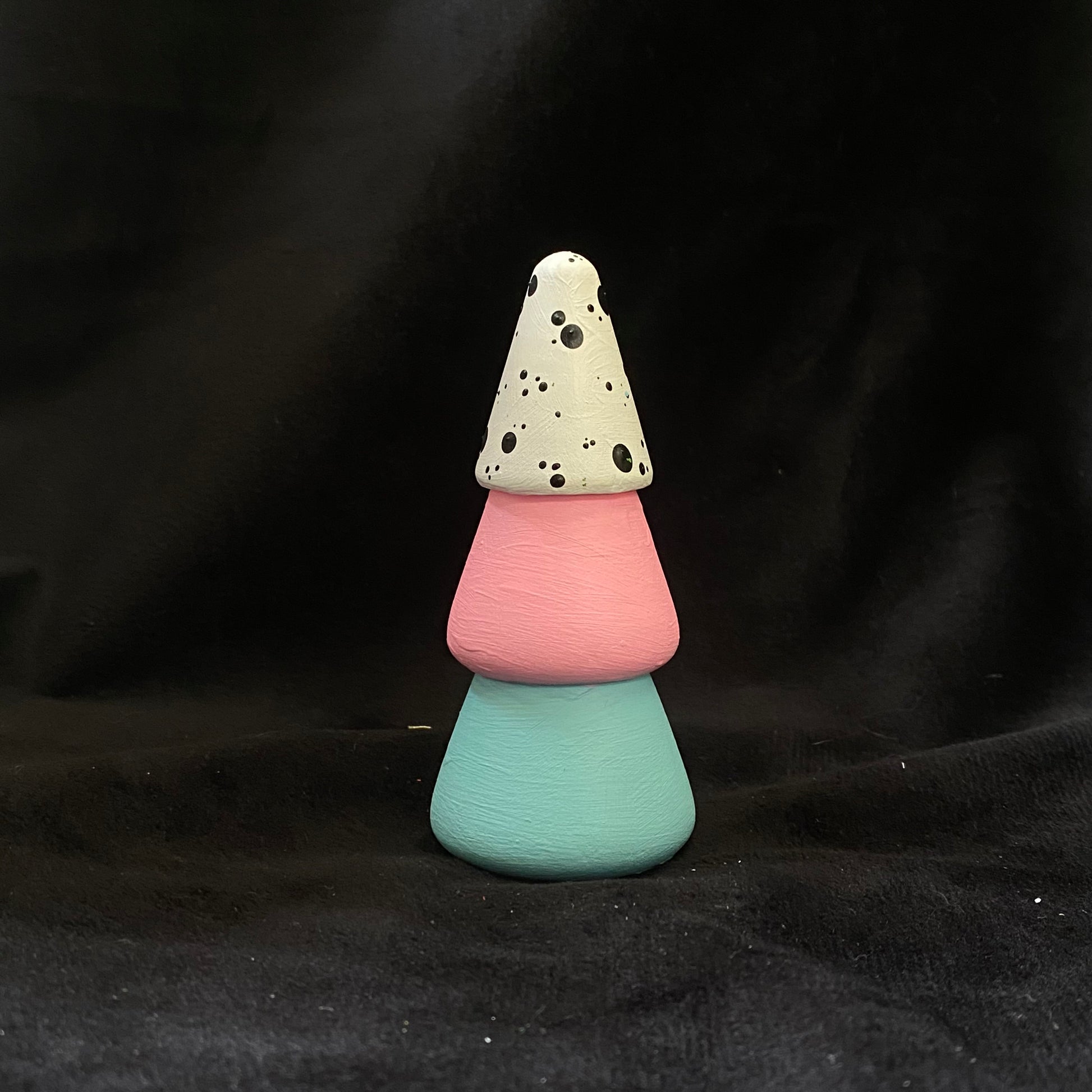 Each wooden tree stands three inches tall. They are hand painted in matte acrylic paint. No two will even be exactly the same.